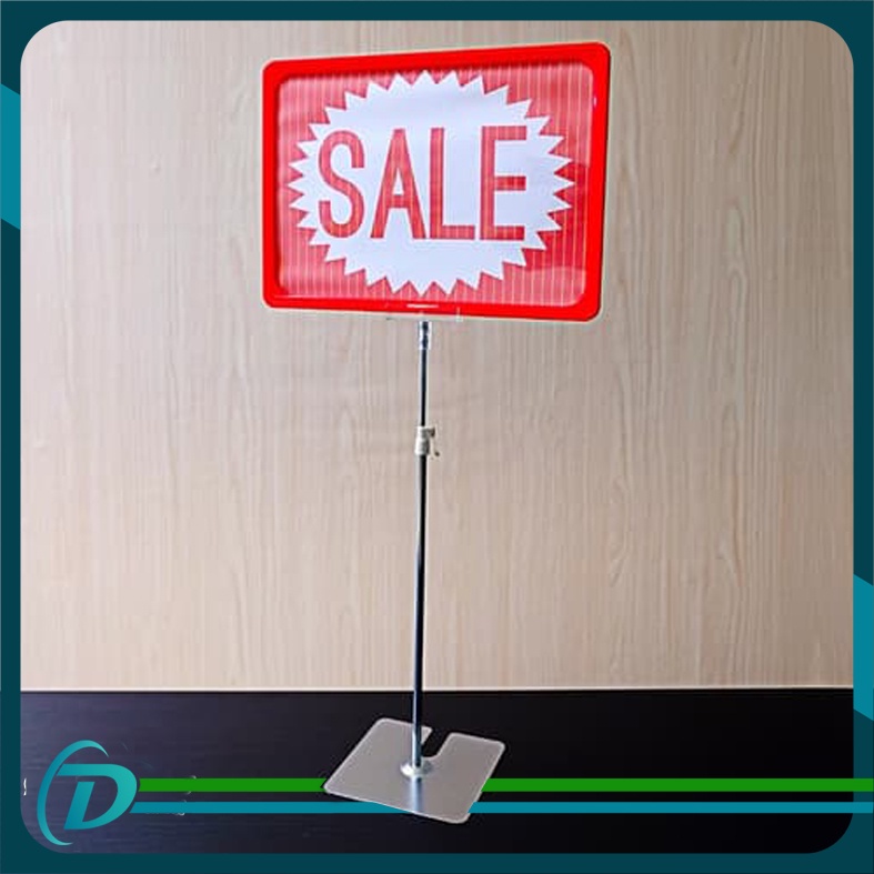 Standing promo merupakan tiang display kecil untuk mempromosikan produk, standing promo juga biasa disebut papan iklan produk, tempat promosi produk, tempat pasang diskon tertentu berupa tulisan untuk menarik pelanggan, tinggi tiang dapat naik turun secara adjustable sehingga dapat disimpan di lantai maupun di rak obral box wagon.Spesifikasi :Kondisi : BaruBahan : Frame plastik, alas plat besiUkuran Frame : 21 cm x 29 cm (A4)Tinggi Tiang : 36 - 56 cm (adjustable)Warna : Merah#papanpromominimarket#standingpromosi#standingdisplaypopA4#standingpromomurah#standingpromotange