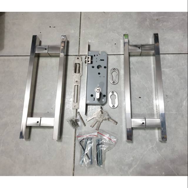 Barang Paket Handle Pintu Stainless Baut Tembus 33cm 2 Set + Kunci Pelor biasa. Pengiriman biasa. layanan admin juga biasa. karena ane orangnya biasa saja .