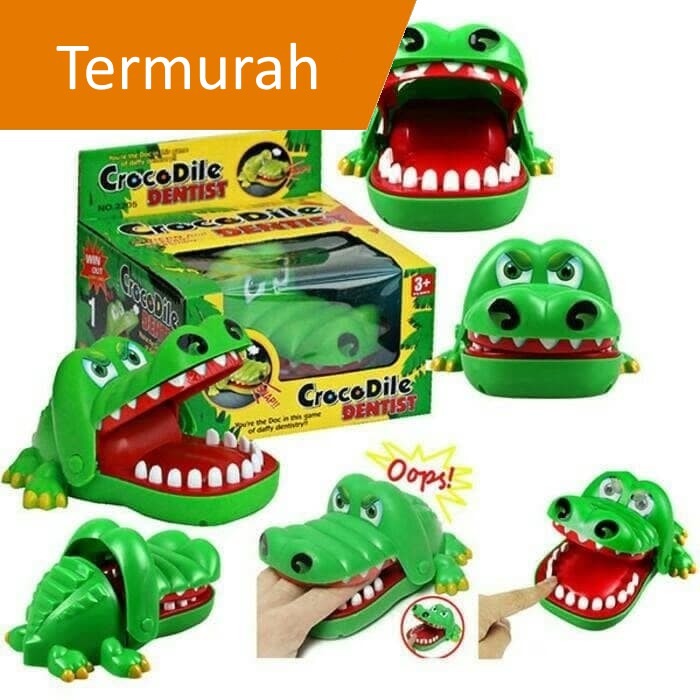 Games terbaru untuk anak usia 3+ edisi Crocodile Dentist dimana setiap pemain menekan gigi Buaya saat terbuka secara bergantian, apabila tidak berhati-hati dalam menekan maka mulut Buaya akan menutup secara mendadak, menggigit jari tangan dan membuat suasana menjadi terkejut atau kaget. Apabila beruntung maka mulut buaya tidak akan menutup dan apabila menutup dia dinyatakan gugur atau kalah. Bahan material plastik halus yang aman, ukuran buaya 15,5cm.Ukuran kemasan BOX 15x15x12,5cm.Ukuran kemasan KANTONG Dimensi 15 X 13.5 X 8 cmHarga Import lebih mahal karna kualitasnya lebih bagus.MINAT? SILAHKAN DIORDER :) STOK TERB