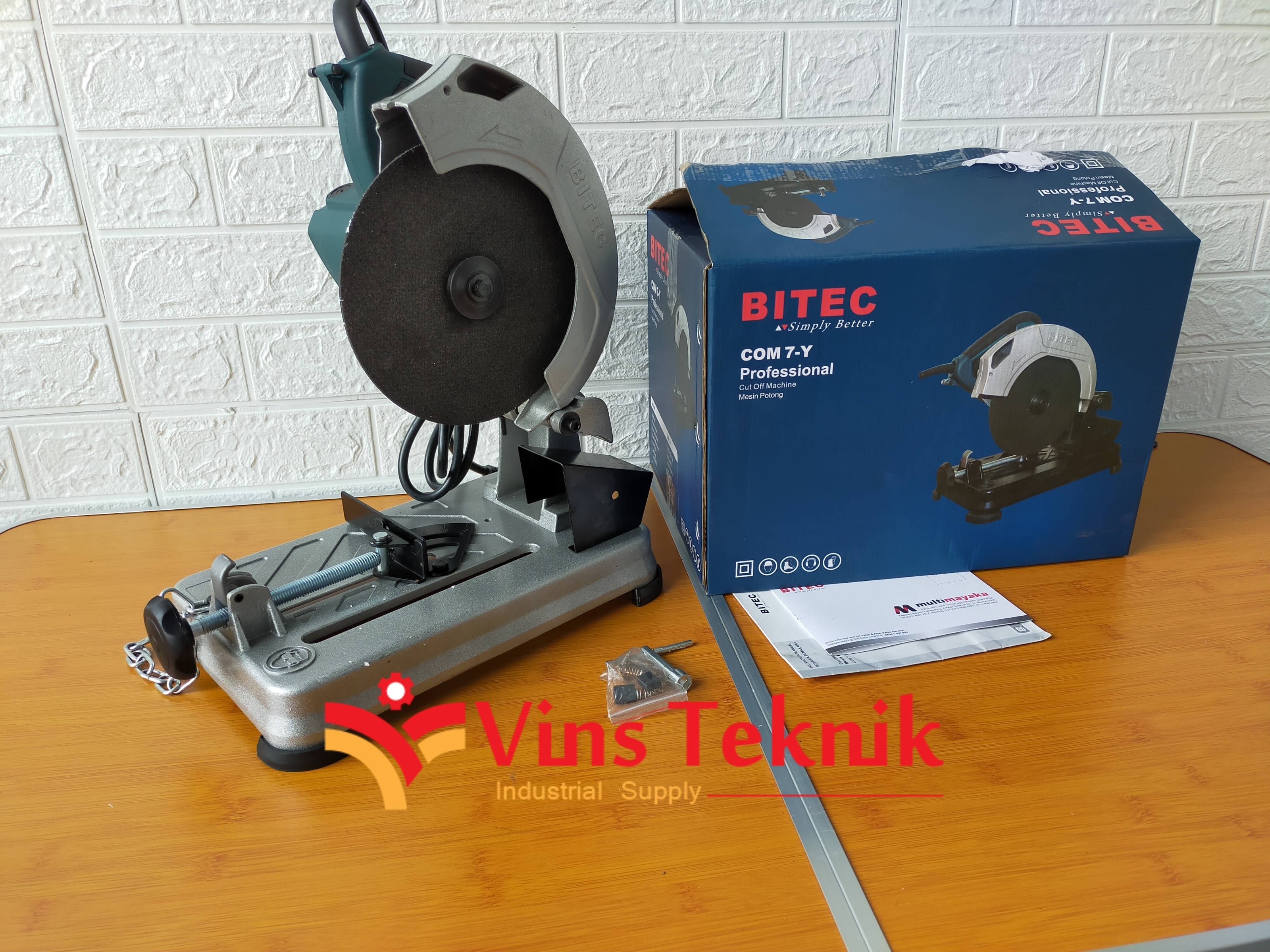 Mesin Cut Off MiniBrand : BitecTipe : COM 7-YVoltage : 220 V - 50 HzSize : 7 inch / 185mmDaya Listrik : 900 - 950 watt Diameter Batu Potong : 185 mm / 7"No Load Speed : 4.500 RPMBore Size : 22 mmPanjang Kabel : 2,5 mGARANSI 1 TAHUN BITEC INDONE