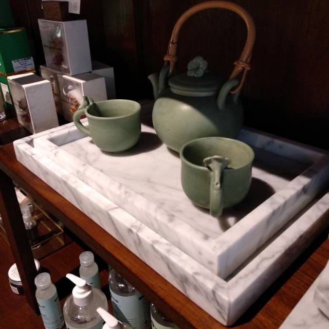 De Marble expertise in marble and granite. We are here to serve and give you an elegant and sophisticated marble look for your home living or surrounding with the most affordable price and best quality.Our marble or granite is handmade and formed from natural stones. Therefore, every product differs slightly in size, veins/patterns, and colour.------------------------------------Carrara Marble Tray | Nampan Marmer Carrara------------------------------------Size | Ukuran: +- 30 x 20 x 4 cm------------------------------------Colour Details | Penjelasan Warna:Carrara: greyish white (putih abu)-------------------------------------Thank you and happy shopping! :) For other assistance or custom order, please chat us.PERHATIAN:Untuk pengiriman menggunakan kurir selain Grab/Gojek, WAJIB menambahkan bubble wrap ketika melakukan pembelian. Berikut link untuk penambahan extra bubble wrap: https://shopee.co.id/Bubble-Wrap-i.43581076.4351159870#demarble #marble #marmer #granite #granit #talenanmarmer #tatakanmarmer #nampanmarmer #marbledecor #marblecoaster #marbletray #marble