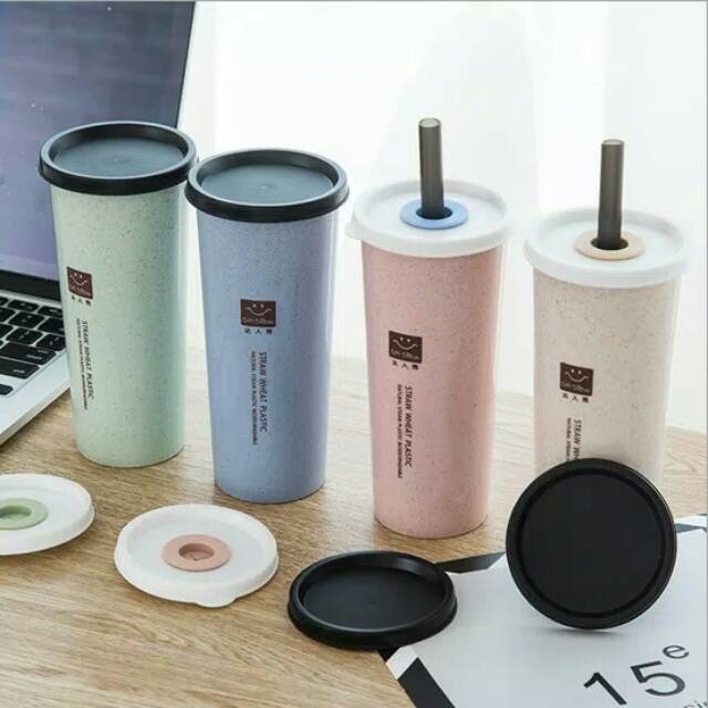 Botol Minum Jerami 2tutupan Pipet Sedotan / Botol Tumblr / Botol Minum Tumblr / Bottle TumblrBahan: Jerami Gandum, Silikon, PP PlastikSize: tinggi 16.5cmdiameter dasar 7.9cmdiameter mulut: 6.2cmKemasan: KotakWarna: Merah Muda, Hijau, Biru Muda &