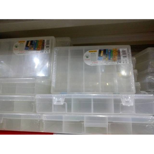 Kotak Perkakas / Storage Box / Box komponen Reiko 1414 Sekat 5.Merk Green Leaf.Tipe = 1414Isi = 5 SekatUkuran Dimensi. P. 19 Cm x L. 12 Cm x T. 3.5 Cm- Terdiri dari 5 Sekat.- Bahan plastik bening berkualitas food grade dan BPA Free.- Tidak mudah pecah meskipun dibanting.- Cocok untuk menyimpan makanan, aksesories, spare part, baut, jarum jahit, benang,alat pancing dll.- Mudah disimpan- MultifungsiNb.Mohon baca deskripsi produk dan konfirmasi stok sebelum membeli.Bisa menambahkan item bubble wrap dan kardus atau kertas kado (tersedia di pilihan produk) bisa di search di bagian produk dalam toko ini ya. Terima kasihThanks.Happy Shop