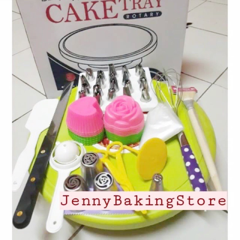 Terdiri dari 20 pcs spuit lokal1 pcs pisau roti1 pcs solet putih1 pcs pemisah kuning telur 1 pcs gunting mawar 1 pcs paku mawar 10 pcs piping bag 1 pcs pengocok telur polkadot 1 pcs scraper 1 pcs kuas kue ukuran besar3 pcs spuit russia 1 lusin cetakan puding mawar dan love#paketdekoras