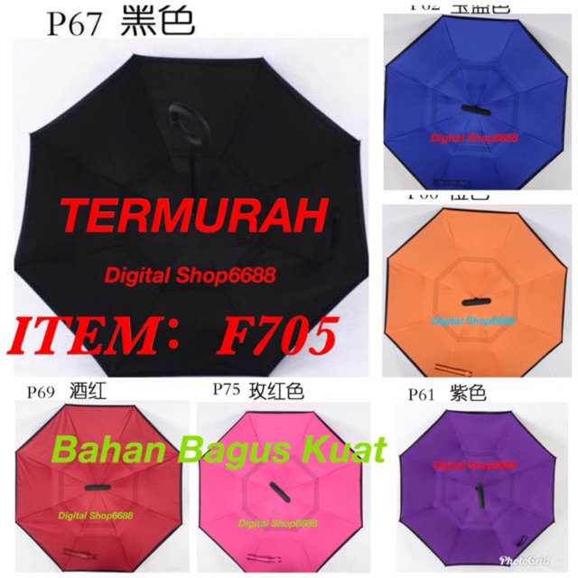 Tambahan bubule wrap biar aman https://seller.shopee.co.id/portal/product/2318281495/pilihan motif MODEL F7151. macan hitam 2. kupu-kupu merah 3. panda hijau 4. kupu-kupu hijau 5. koala hijau 6. anjing laut abu-abu TERSEDIA WARNA MODEL F705:1. HITAM P672. PINK P753. BIRU P624. UNGU P615. MERAH P696. ORANGE P66Tolong cantumkan Warna yang diinginkan Di dalam KETERANGAN jika tidak kami akan RANDOM warna dalam pengiriman^^ Terima kasih atas pengertiannya ! :)(JANGAN TERTIPU DENGAN HARGA MURAH TAPI KUALITAS TIDAK DI JAGA & PACKING TIDAK AMAN ) Disini kami selalu berusaha menjaga kualitas & packing sebaik mungkin agar produk sampai dgn selamat sampai tujuan :)PAYUNG KAZBRELLA DILENGKAPI TOMBOL MERAHInilah Payung yang di tunggu2 dari Digital Shop6688 Payung Kazbrella Kami menggunakan bahan kualitas yg paling TERBAIK & Dijamin No.1.Payung model unik yang berbentuk terbalik Kazbrella. Dengan model unik tersebut Anda tidak perlu lagi kerepotan membuka atau menutup payung saat kehujanan.Sangat cocok dan praktis untuk di bawa atau saat kehujanan masuk ke mobil .*Payung Trend masa kini*Anti Basah kuyup Karena Modelnya yang terbalik maka airnya akan tertahan di sisi sebaliknya .*Fashionable tidak mengurangi gaya Pakaianmu*Tombol buka tutup sangat nyaman & gampang ( tidak melukai tangan ) .*Praktis ,sangat cocok untuk selama perjalanan jauh dan angin kencang*Kain tidak mudah kusut dan halus Karena menggunakan bahan Pongee yang sangat bermutu tidak gampang rusak*Tiang anti karat dilapisi cat hitam *Kuat saat tertiup angin Kencang sekalipun Karena menggunakan Rangka fiber yang berkualitas .Tolong cantumkan Warna yang diinginkan jika tidak kami akan RANDOM warna dalam pengiriman :Terima kasih atas Pengertiannya :)Keterangan:Bahan kain: DampakBahan rangka : Fiber Ukuran panjang : 80 cm Diameter: 120cmJari-jari : 8 Happy shopping , Digital sho