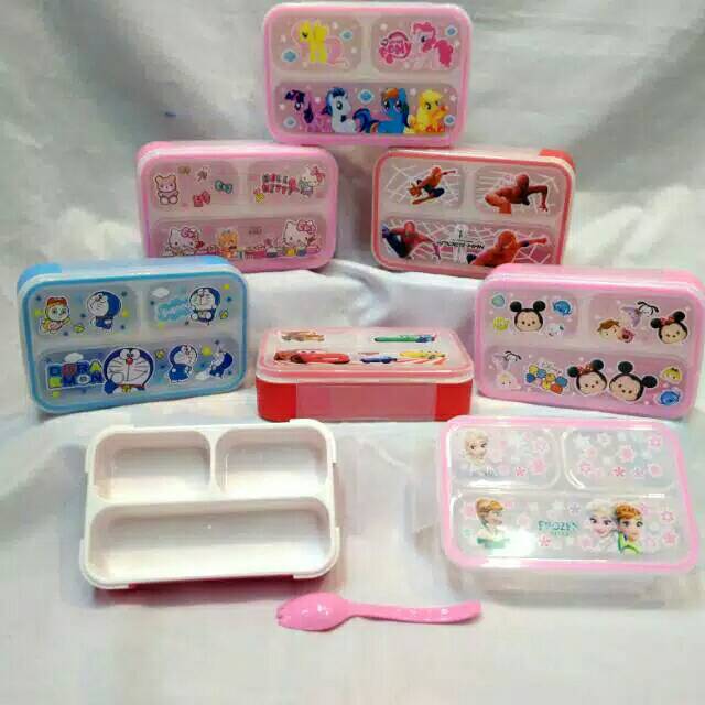 Tempat makan karakter, anak2 jadi suka mkn..Sekat 3 dan mudah dibawa utk bekal anak..Utk motifnya cek stock dl ya.. Atau akan dikirim random aplg yg dipilih tidak ada.. Tha