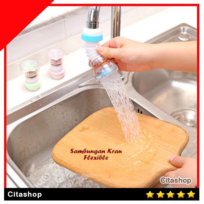 Sambungan Kran Flexible Dengan FILTER BUTIRAN KARBON AKTIFBIRU, HIJAU KOSONGGGREADY :- PINKCANTUMKAN WARNA YANG DI ORDER DI KOLOM KETERANGAN. JIKA TIDAK, MAKA AKAN DIKIRIM WARNA RANDOM !!Sambungan kran keluaran baru ini dilengkapi filter air berbentuk butiran karbon aktif.Karbon aktif adalah suatu material yang memiliki pori-pori sangat banyak, pori-pori ini berfungsi untuk menyerap apa saja yang dilaluinya. Karbon aktif berguna sebagai filter untuk menjernihkan air, supaya air jernih, gak bau dan layak dikonsumsiDengan adanya butiran karbon aktif, air yang keluar dari sambungan kran sudah pasti lebih bersih tentunya.Sambungan kran bisa ditekuk, dipanjang pendek, bisa juga diputar 360 derajat, membersihkan wastafel jadi mudah dan lebih bersih tentunya. Kran jadi bisa ditekuk dan digerakkan hingga ke sudut-sudut wastafel.Tidak hanya itu, sambungan kran ini dapat menghemat air hingga 50%, air yang keluar dari mulut sambungan kran berbentuk bunga air sehingga pemakaian air jadi lebih irit. Aliran air jadi terasa lebih deras, membersihkan piring atau makanan jadi lebih cepat dan air kran tidak muncrat kemana-mana.Bagian atas sambungan kran terbuat dari bahan karet elastis, bisa dipasang di semua kran wastafel atau kran kamar mandi.Material : PlastikSize :- 4.6 x 11 cm (kondisi panjang)- 4.6 x 7.8 cm (kondisi pend