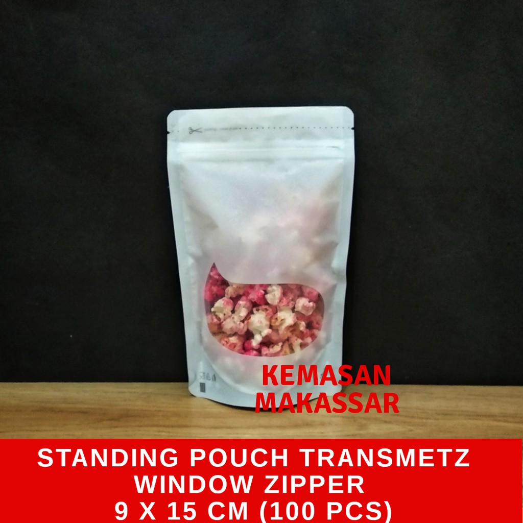 Standing Pouch Window Transmetz Putih 150 gr (isi 100 lbr)Cocok untuk kemasan aneka produk makanan seperti :- Keripik- Produk Bubuk- Produk Kacang kacanganDetail Kemasan Bahan dan Ketebalan - Bagian Belakang & Bawah : PET/VMPET / SPE - Ketebalan 90 Micron- Kemasan Food Grade- Memiliki Sertifikasi Halal- Bagian depan dan belakang berwarna putihUntuk menutup bagian atas bagian ujungnya bisa menggunakan zipper atau dipress dengan Hand sealer listrik yg biasa buat press plastik.UKURAN:Lebar = 9 cm Tinggi = 15 cm *)Setara 150 gram gula PasirHarga di atas untuk pembelian 1 pack isi 100 pcs#standingpouch #kemasanmakanan #kemasanukm #KemasanPlastik #KemasanMurah #standingpouchalumunium foil #KemasanMakanan #KemasanStanding #TokoKemasanmakassar #RumahKemasan #KemasanAlufoil #Kemasankeripik #kemasanukmmakassar #kemasansnack #kemasance