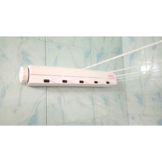 Terlaris Perlengkapan di Kabupaten Tuban Roll Fleksible Jemuran Kamar Mandi 5 Lajur Tali Panjang 3,75 M Tanpa Merusak Dinding Tembok dari Tidak Ada Merek Kota Jakarta Barat