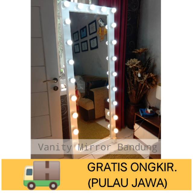 Standing mirror lampu full body size 180x60harga sudah termasuk 20pcs lampu- belakang pakai kaki/penyanggah/StandingMaterial : kayu Multiplex Maranti Grade A (BUKAN kayu HPL atau particle board atau presan serbuk kayu yg mudah rapuh) kualitas produk kita jamin kuat dan tahan lama GRATIS ONGKIR UNTUK PULAU