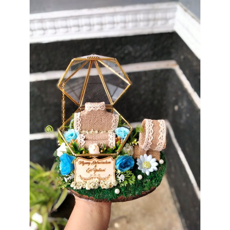 UNTUK KALUNG GELANG DAN CINCIN (Tanpa Anting)Tempat mahar pernikahan dengan terrarium dan alas woodslice membuat kotak mahar pernikahan anda terlihat sangat elegant.. Ayo di order kotak maharnya kak.. Bahan terrarium terbuat dari kaca dengan lapisan kuning di pinggir .. Dan woodslice yang kokoh... Bisa request warna bunga dan grafir nama sesuai permintaan .. Silakan tulis di keterangan .. #kotakmaharmurah #kotakmaharunik #woodslicemurah #tempatcincin #tempatcincinunik #tempatlamaran #kotakcincin #kotakcincinm